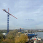 Helemaal achterin de Nieuwe Haven staat sindskort een enorme torenkraan. De nieuwe torenkraan is eigendom van Open Shipyard. De torenkraan past in